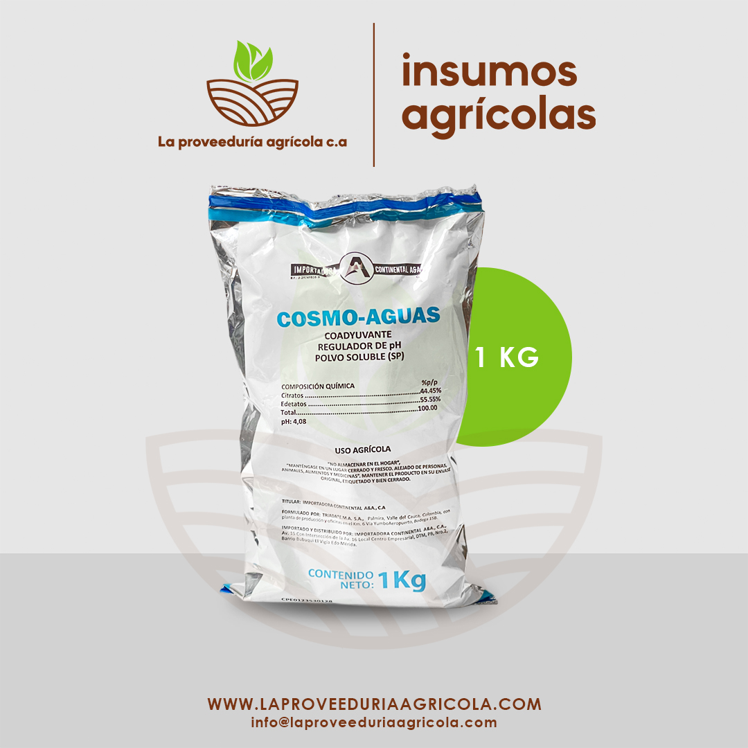 COSMO-AGUAS es un Regulador de pH y suavizador de aguas duras de uso agrícola, su efecto buffer hace que el agua conserve el pH y la dureza en los rangos adecuados para proporcionar mejores condiciones químicas en las mezclas de los diferentes agroquímicos y fertilizantes durante largos periodos, mejorando su efecto final.