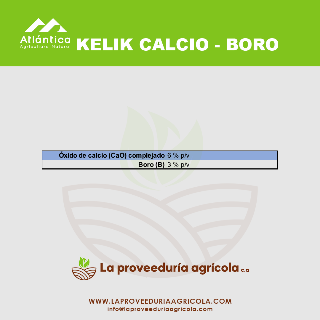 Kelik Calcio-Boro (Ca-B) es un corrector de carencias de calcio y boro. Al ser un producto complejado con ácidos orgánicos, éstos le confieren una mayor estabilidad, por lo que es capaz de corregir las carencias en la planta de forma inmediata gracias a su elevada disponibilidad y facilidad de absorción.