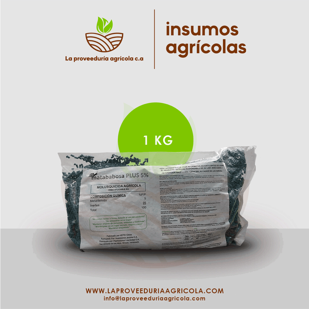 La Proveeduría Agrícola te ofrece Matababosas PLUS5%, Molusquicida Agrícola que tiene como función controlar babosas y caracoles en hortalizas, frutales y plantas de jardinería en general. Destruye las células productoras de mucosa, produciendo contracciones musculares, parálisis, desecación y muerte.