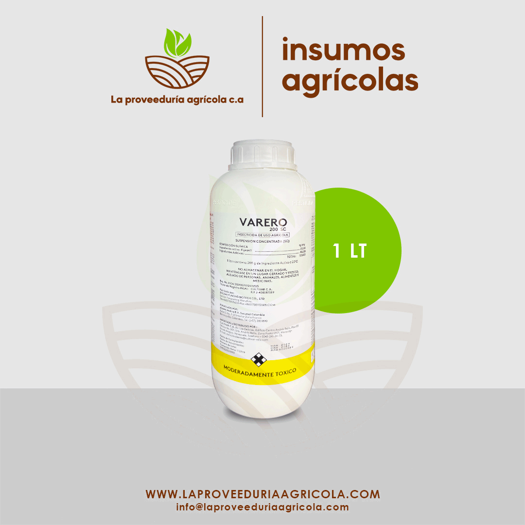 VARERO 200 SC es un insecticida que actúa por contacto e ingestión contra una amplia gama de plagas, especialmente masticadoras, raspadoras-chupadoras y minadoras. También tiene acción translaminar y sistémica y es altamente persistente.